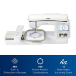 - 258 built-in embroidery designs and 13 fonts