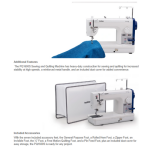 - Included Accessories General Purpose Foot, Rolled Hem Foot, Zipper Foot, Invisible Foot, ¼" Foot, Free Motion Quilting Foot, Pin Feed Foot, Knee Lifter, Fabric Separator, Feed Pin, Feed Pin Changer, Fabric Extension Table, Dust Cover, Semi-hard Cover.