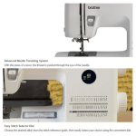 - Built-in Threading System - With the press of a lever, the thread is pushed through the eye of the needle.
