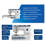 - Brightly Lit LED Work Area - Easy on the eyes when sewing on dark fabrics, ensuring accurate seams and stitch quality.