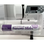 The Supreme Slider from The Gypsy Quilter® was developed by award-winning quilter Pat LaPierre to make free-motion quilting a breeze on your domestic sewing machine. The pink sticky back grips the bed or your machine and keeps the slider from shifting while you work. The zero-friction Teflon top allows your project to move freely so you can easily slide your project around as you quilt. Simply place the slider on the bed of your sewing machine, pink sticky side down, by lining up the hole on the slider with the needle hole on your machine. The pink sticky back will hold it in place until you’re ready to remove it. Simply lift it off the bed of your machine, and store back in its tube for the next project.