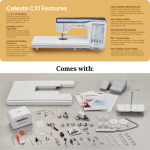 Explore the next frontier of sewing and quilting with the ultra-modern Celeste CX1 Computerized Sewing-Only Machine. Boasting 760 sewing stitches, wireless integration with Artspira‡, and a spacious 11.25" x 5.0" workspace (~16" x 25" workspace with the included wide table), the Celeste CX1 unlocks endless possibilities in sewing and quilting.